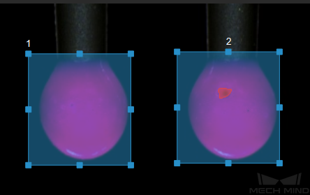 결함 검출 를 클릭하고 화면에서 + 를 클릭하여 하나 혹은 여러 개의 ROI를 추가할 수 있습니다.