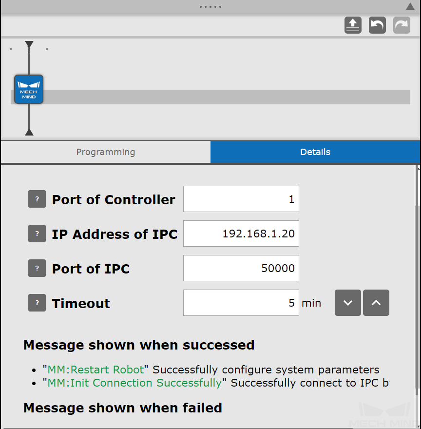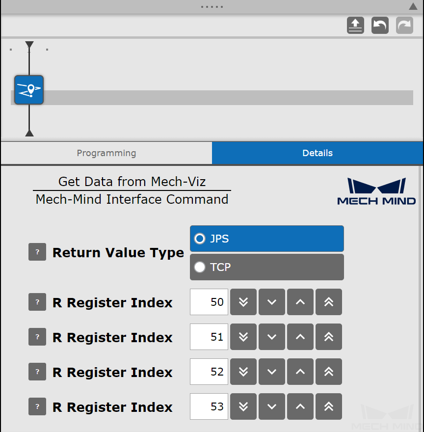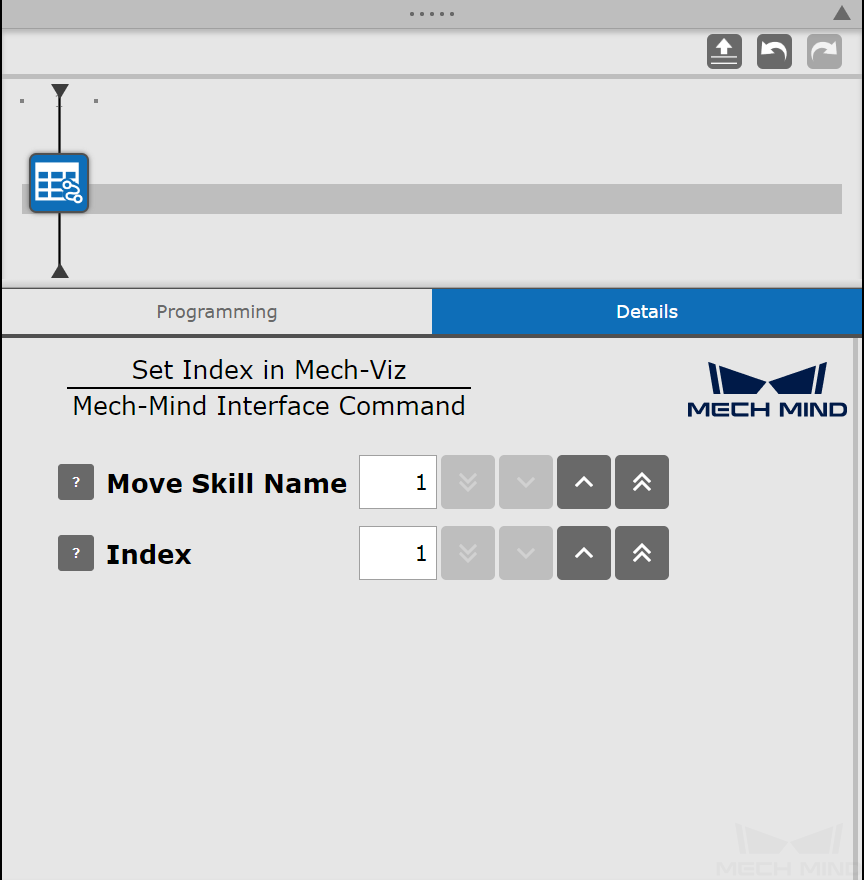 The index parameter of the specified Step will be set to this value, and the parameter’s value should be the current index value in Mech-Viz plus 1 |