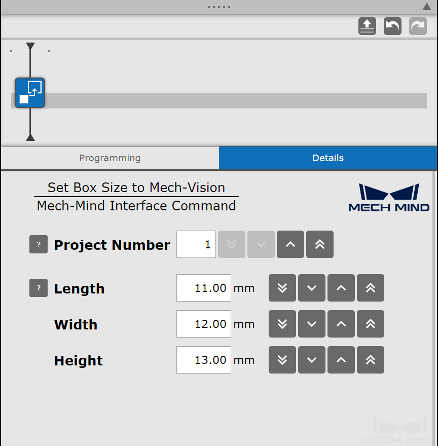 This command is used to input object dimensions to the Read Object Dimensions Step in the Mech-Vision project.