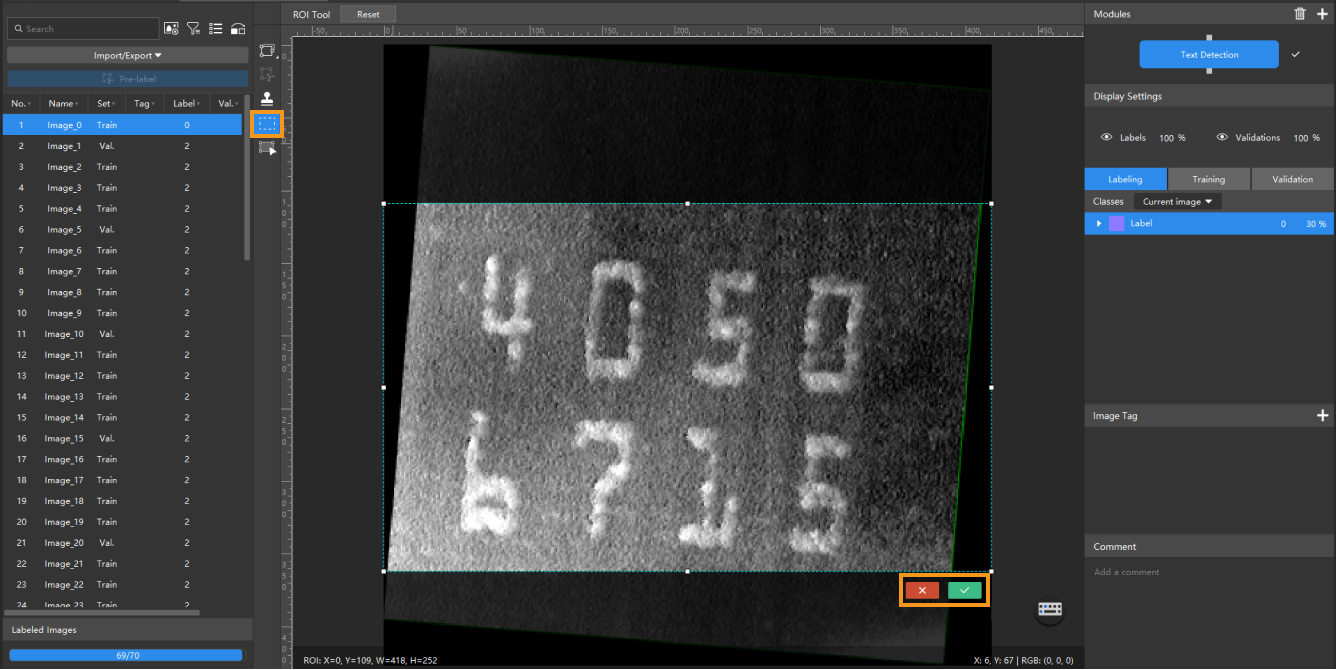 and adjust the frame to set an ROI that covers the text areas of all images. Then, click the