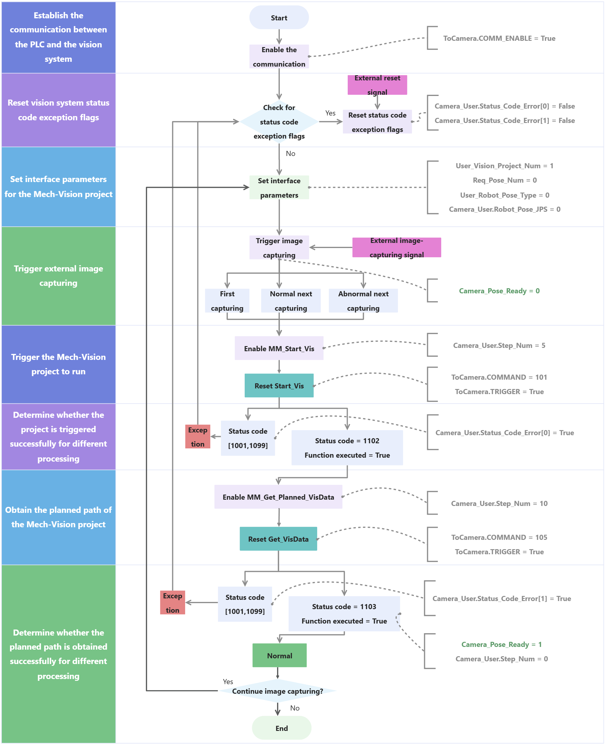 Camera_User.Start_Vis: The flag that triggers the Mech-Vision project to run when the rising edge occurs.