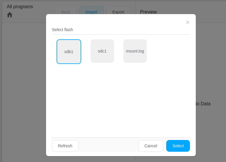 Select mm.program in the pop-up “Please select the file” window, and click Select. The interface prompts “Import successfully” and returns to the “Program” page.