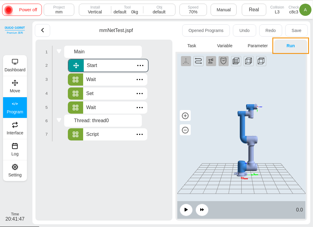 After loading the project or programs, you need to configure the IPC’s IP address and port on the teach pendant, so that the robot can communicate with the IPC.