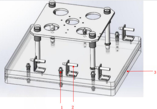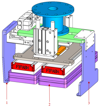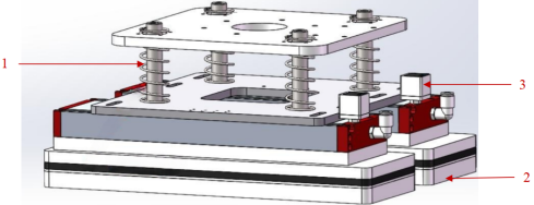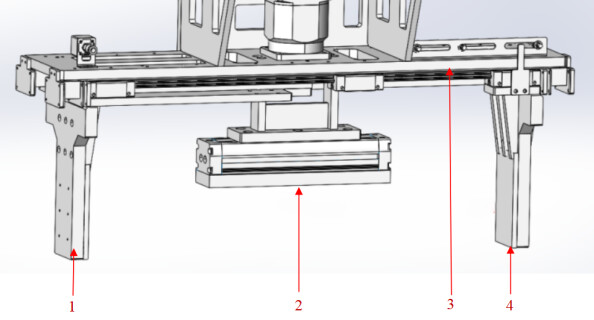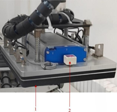 The box dropping sensor is an important component of the gripper. When a carton is dropped, the box dropping sensor will immediately detect it and notify the host system to stop the robot. As shown in the figure below, 1 is the detection rod, 2 is the box dropping sensor, and 3 is the foam.