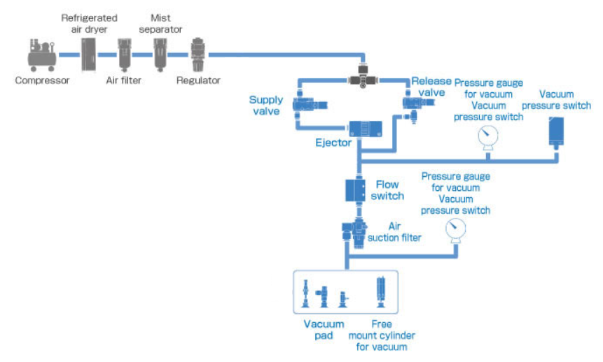The gas circuit system of the vacuum generator is shown in the figure below.