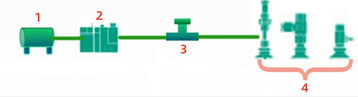 The gas circuit system of the vacuum pump or blower consists of a 1-vacuum pump, 2-control system, 3-check valve, and 4-suction cup.
