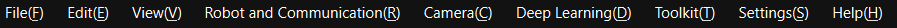 The menu bar provides basic functions related to projects, as well as supplementary tools like Camera and Deep Learning.