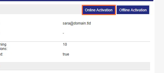 On the page that appears, click Online Activation in the upper-right corner. The license is now activated.