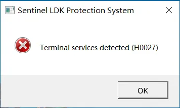 Failed to open the encrypted software via remote control, and the error message “Terminal services detected (H0027)” popped up.