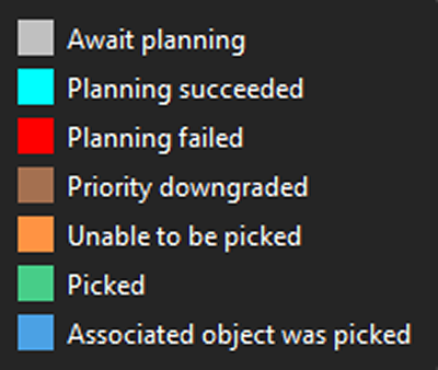 The cause of a picking failure can vary. Please refer to Unpickable Causes. To view the specific cause, you can also double-click the pick point name in the 3D simulation area and check the Vision Result Details window that pops up. |
