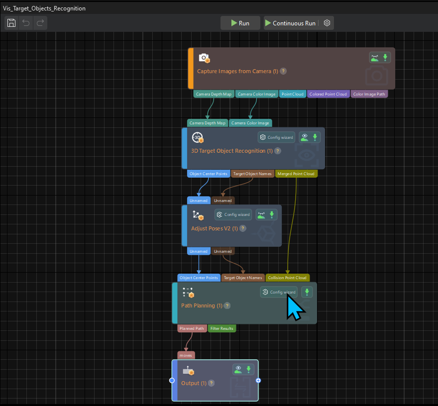 In the Graphical Programming Workspace of the main interface, the workflow of the “Vis_Target_Object_Recognition” project will be displayed.