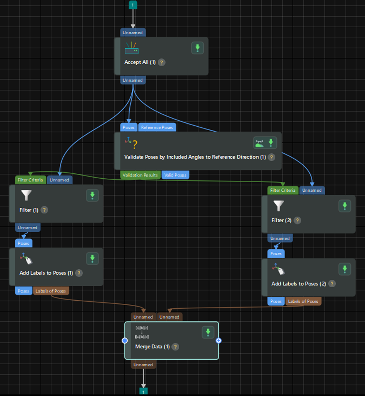 Create a Procedure according to the following procedure. Then generate custom pick point labels based on the angle between the target object and the reference direction (for example, set the pick point labels to 1 and 2), and input them to the “Pick Point Labels” input port of the “Output” Step.
