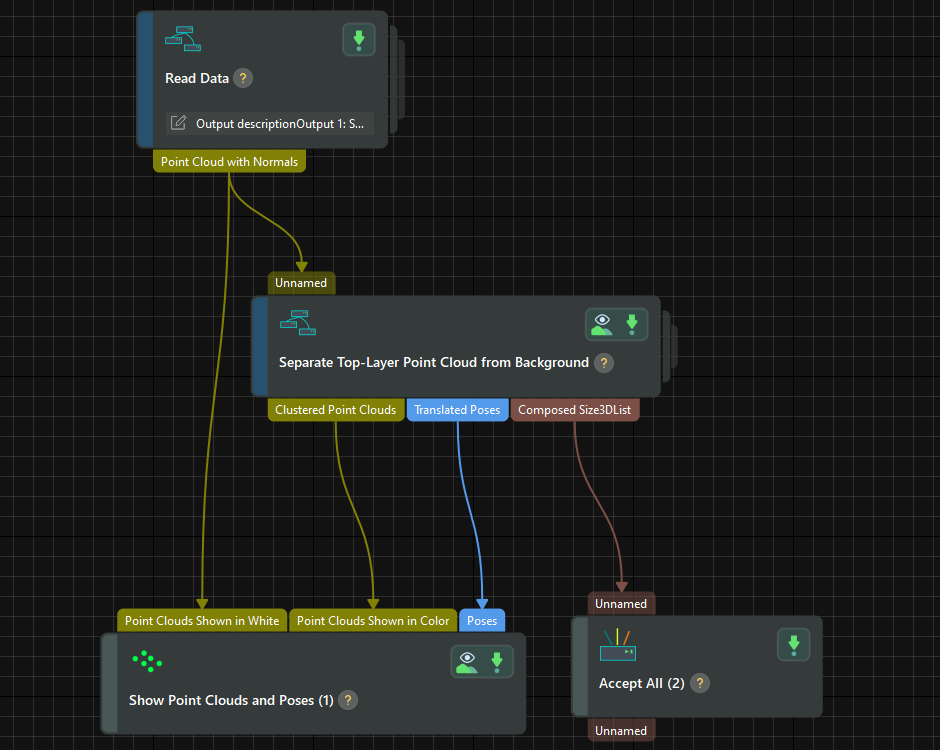 The example project is shown in the figure below. The project contains a “Calc Wheel Hub Dimensions and Poses via Shape Fitting” Step, and its input and output are described as follows.
