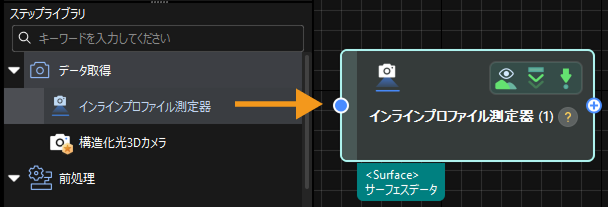 ステップをクリックして選択し、マウスの左ボタンを長押ししたままプロジェクト編集エリアの任意の場所へドラッグし、マウスボタンを離すと、そのステップがプロジェクトに追加されます。