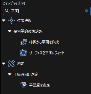 ステップライブラリの検索ボックスにステップ名のキーワードを入力します。