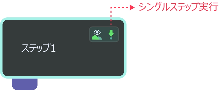 ステップ単体のデバッグ時には、シングルステップ実行アイコン(
