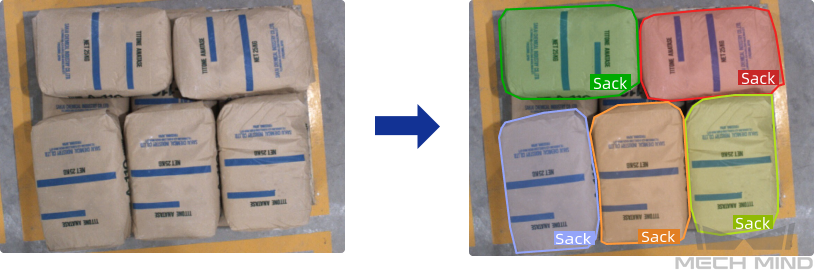 各対象物の輪郭をセグメンテーションし、カテゴリラベルを出力します。