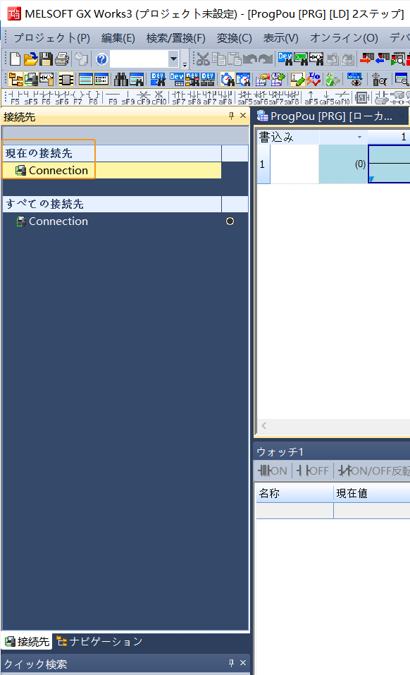 「接続先指定 Connection」ウィンドウの OK をクリックし、GX Works3ソフトウェア画面に戻ります。