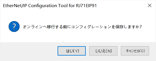 ポップアップウィンドウが出て、「オンラインへ移送する前にコンフィグレーションを保存しますか?」というメッセージが表示されます。はい をクリックしてオンラインモードが有効になります。