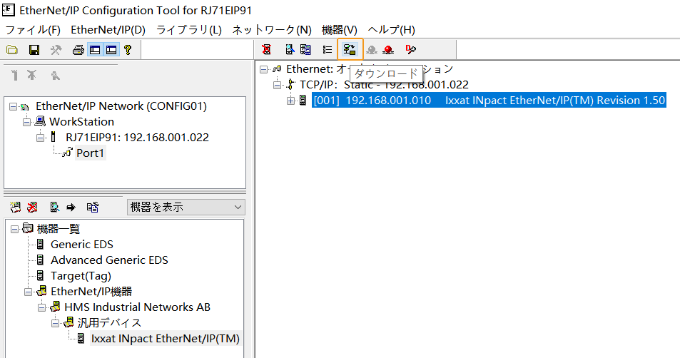 PLC EtherNet/IPネットワーク構成をPLCにダウンロード