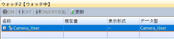 「ウォッチ2」のウィンドウで、名称から「Camera_User」ラベルを見つけます。