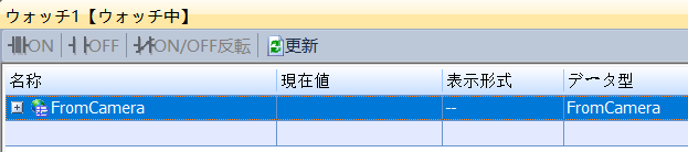 「ウォッチ1」のウィンドウで、名称から「FromCamera」ラベルを見つけます。