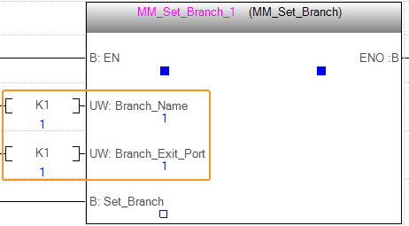 MM_Set_Branch機能ブロックをクリックし、以下のポート値を設定します。