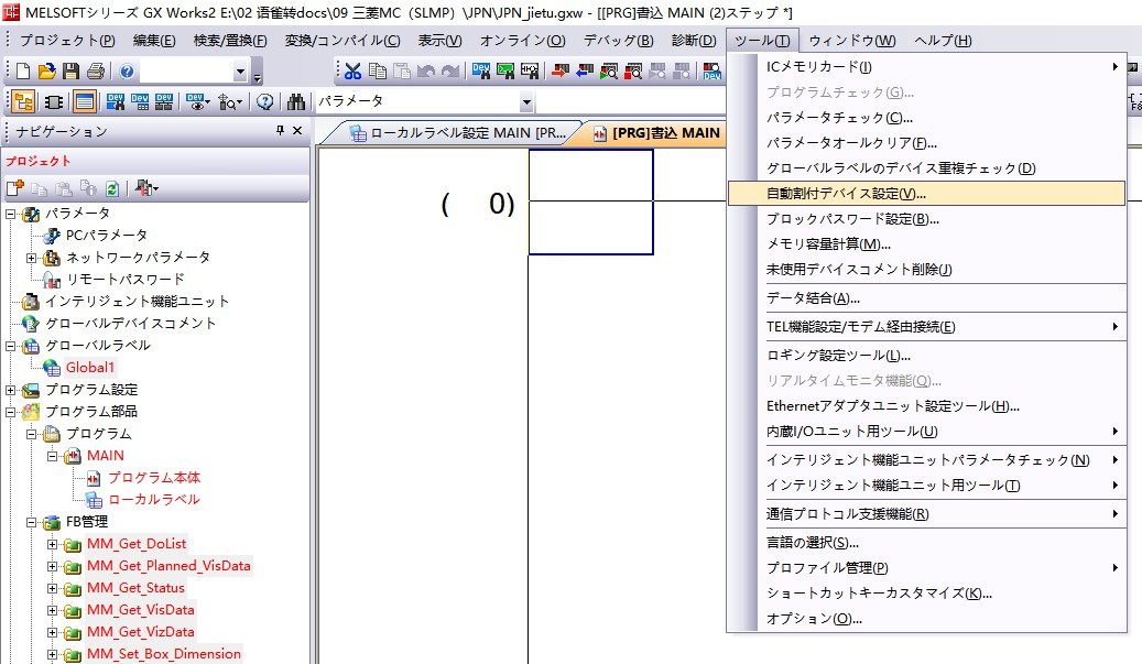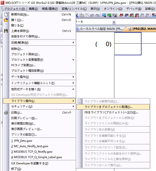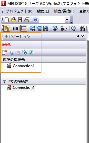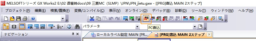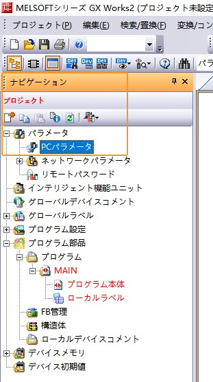 GX Works2ソフトウェア画面に戻り、メニューバーで をクリックします。