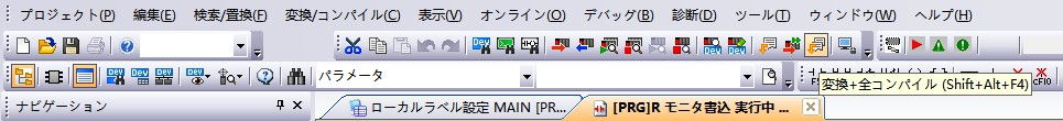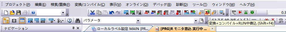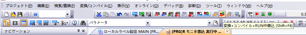 ツールバーの 変換+コンパイル+RUN中書込 アイコンをクリックします。