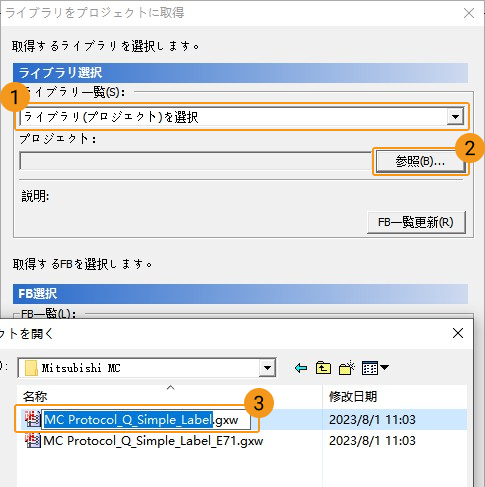 MC Protocol_Q_Simple_Label.gxwファイル(事前にIPCからコピーする必要があります)を選択して 開く をクリックします。