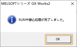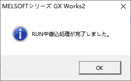 OK をクリックすると、PLCへの最新プログラムの書込が完了します。