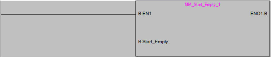 MM_Start_Emptyを MAIN/54行目 にドラッグすると、FBインスタンス名入力 画面がポップアップします。ここでは初期値を使用して OK をクリックします。ツールバーの 横線入力 をクリックし、左バスバーと機能ブロック入力EN1ポートが接続します。