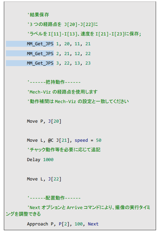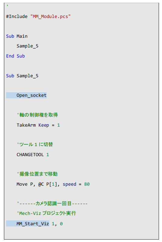 サンプル⑤「MM_S05」は、通常のMech-Vizを利用したフロー( サンプル②)を元に、生産ラインに運用される際注意すべき点を配慮しながら、処理を行います。