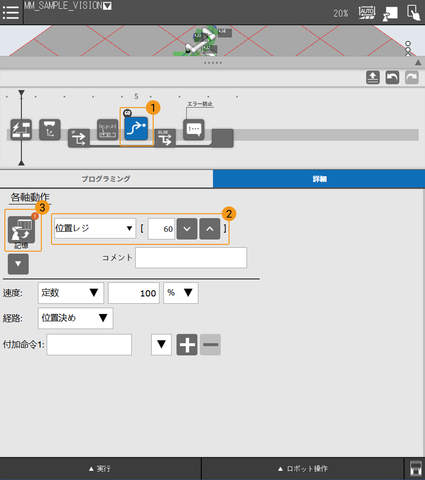 Mech-Vizプロジェクトが出力された最初の経路点は、関節角度形式 でPR[60]に保存されます。Mech-Vizプロジェクトが正常に実行された後、moveJを使用してPR[60]へ移動します。