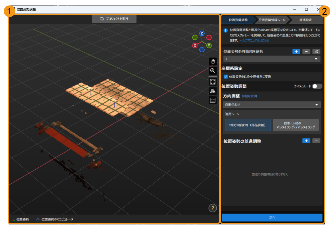 位置姿勢調整、ソート、フィルタリングなどに関するパラメーターを調整できます。 |