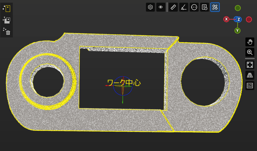 ワークライブラリには、ワークを測定するための機能が組み込まれています。「モデルを編集」手順の可視化エリア右上にある