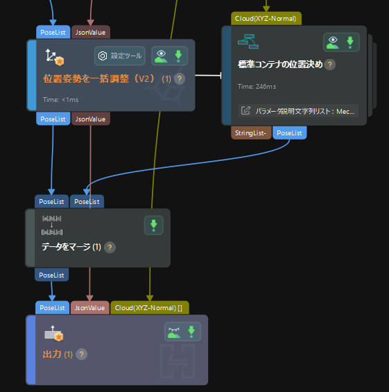 把持位置姿勢が複数ある場合、把持位置姿勢のフィルタリングが必要となるため、ステップではワークの把持位置姿勢を出力する必要があります。