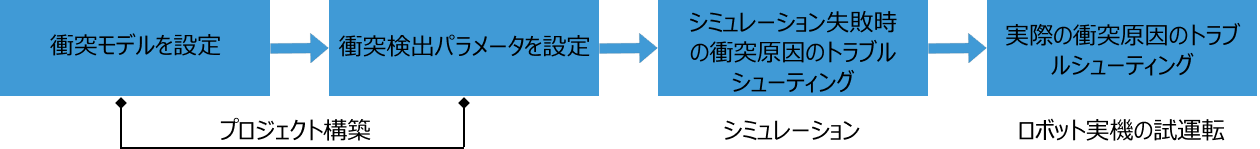 下表に、各段階における衝突検出に関する操作ガイドと原因のトラブルシューティングを示します。