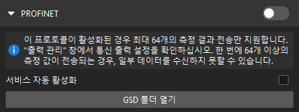 솔루션을 다시 열었을 때 PROFINET 통신 서비스가 자동으로 켜지도록 하려면 서비스 자동 활성화 옵션을 선택하세요.