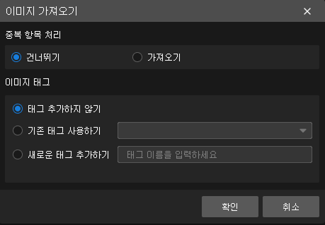 이미지 또는 폴더 가져오기 시 표시되는 대화 상자: