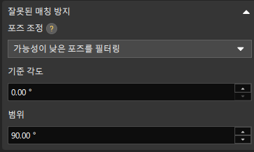 '3D 대상 물체 인식' 도구의 '대상 물체 선택 및 인식' 프로세스에서 고급 모드를 활성화하고, '근사 매칭 포즈 조정 또는 필터링' 카테고리에서 다음과 같이 설정하세요. X축 방향은 0으로 설정합니다. 이는 목표 방향이 포인트 클라우드 모델 포즈의 X축 방향과 일치함을 의미합니다.