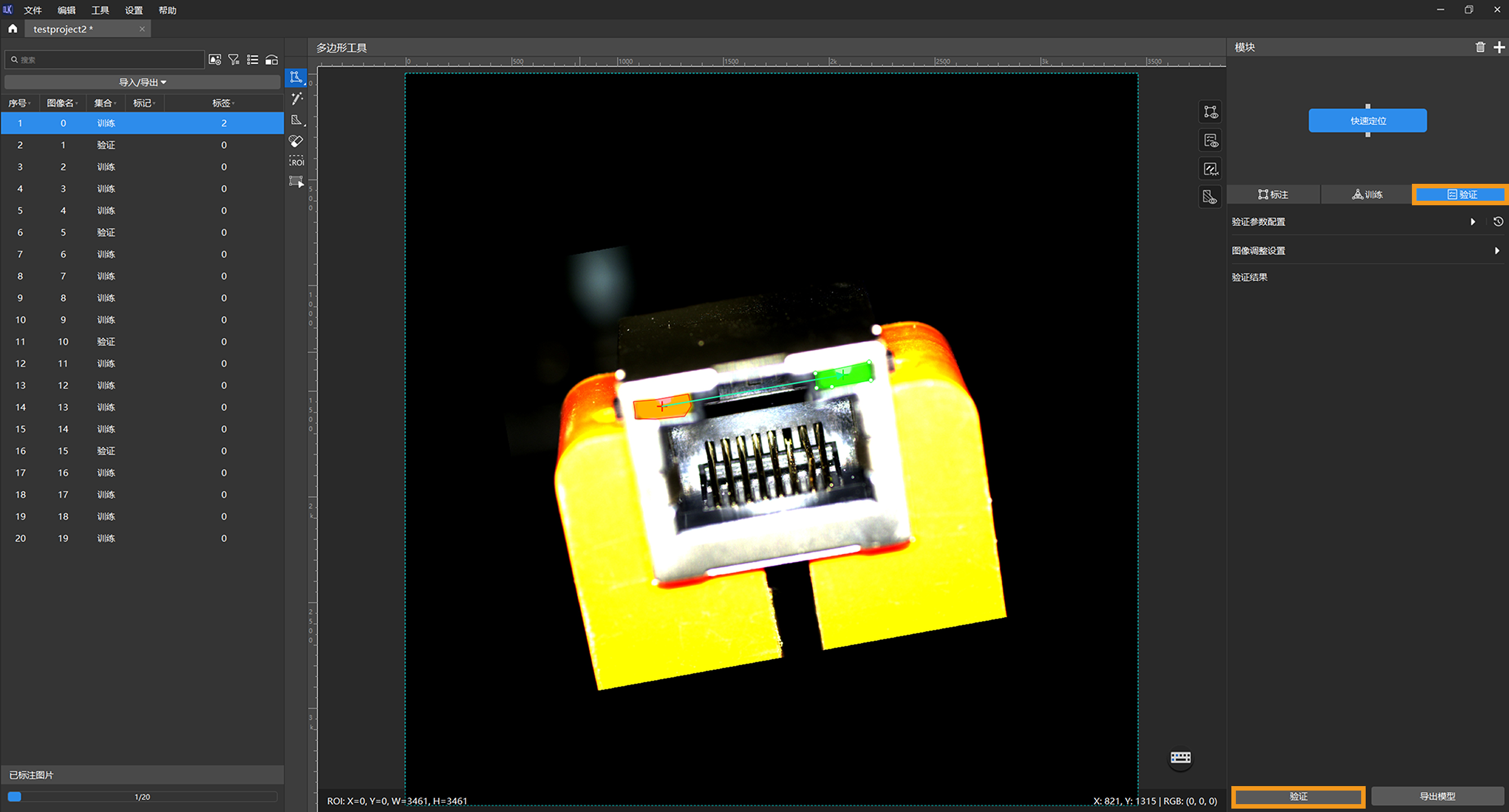 验证结束后,在验证结果参数栏中可查看选中图片的快速定位结果。