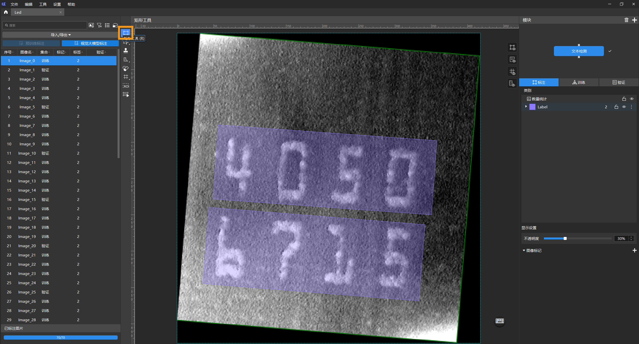以LED屏幕数据(单击下载)为例,本文将展示如何使用“文本检测”模块训练可检测图像中文本区域的模型,以配合“文本识别”模块使用,输出图像中的数字、字母以及部分特殊符号等字符。