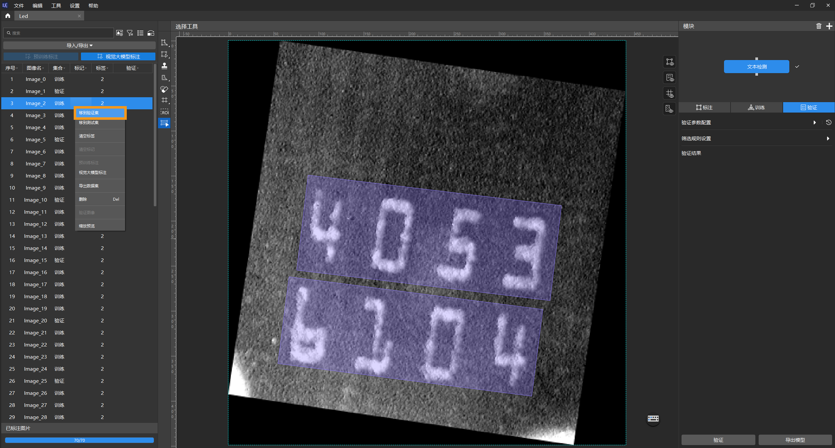 验证模型:训练结束后,单击验证可以验证并查看模型识别效果。