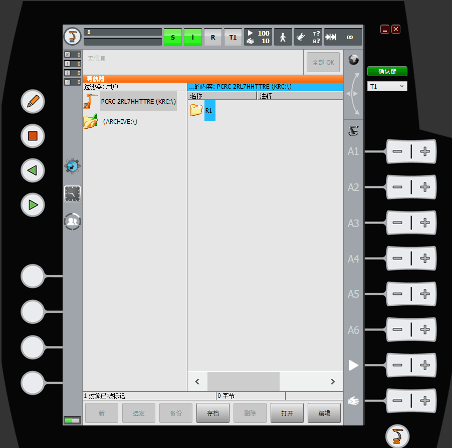 1. 点击SUBMIT解释器(示教器中的S按钮),打开运行程序列表,查看是否有其他服务程序再运行。程序名前状态显示为绿色,表示程序正在运行。