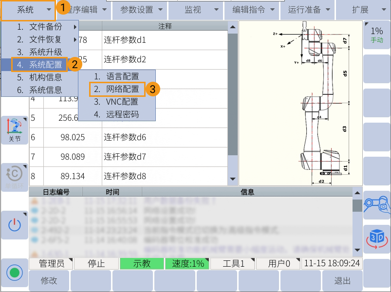 设置“机器人通信配置”