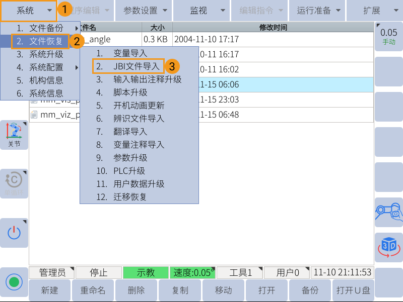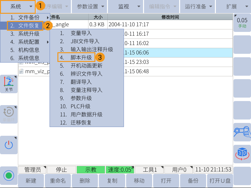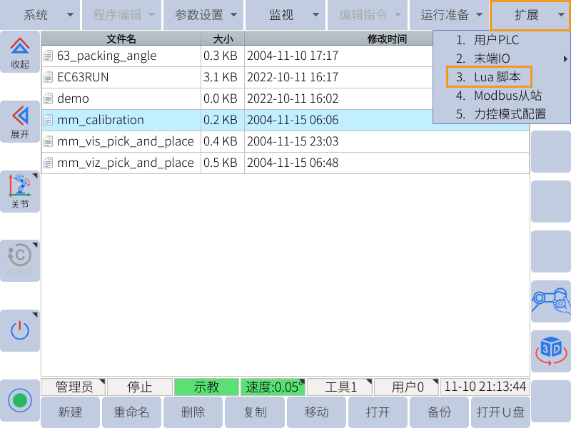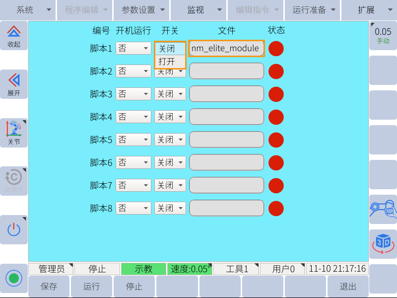 按照以下步骤将标准接口程序烧录至机器人。