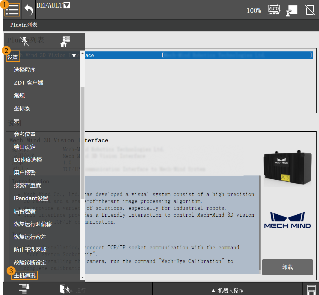 单击 Mech-Vision 工具栏中 机器人通信配置 。