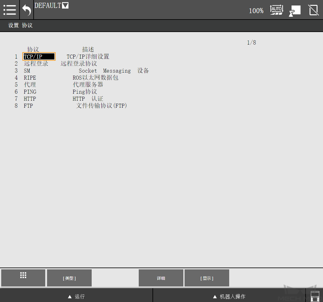 单击完整菜单,依次选择 设置 > 主机通信 ,进入设置协议界面。
