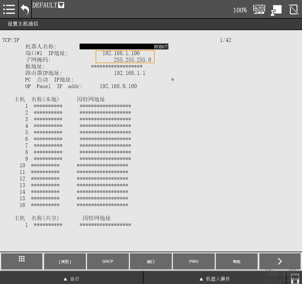 设置机器人 IP 地址。